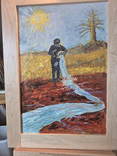 "End of Winter", acrylic on gessoed hardboard, by Gary Theriault