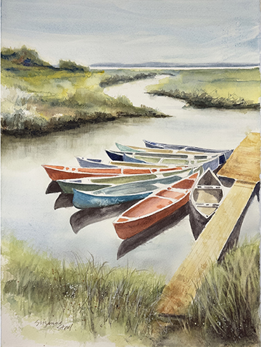 "Fall in the Marsh", acrylic on gessoed hardboard, by Gary Theriault