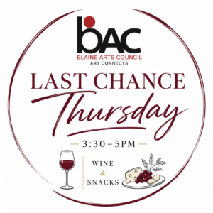 This Thursday, April 30th, from 3:30-5 at the Blaine Art Gallery – 922 Peace Portal Dr.